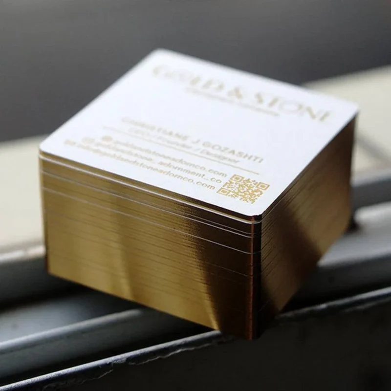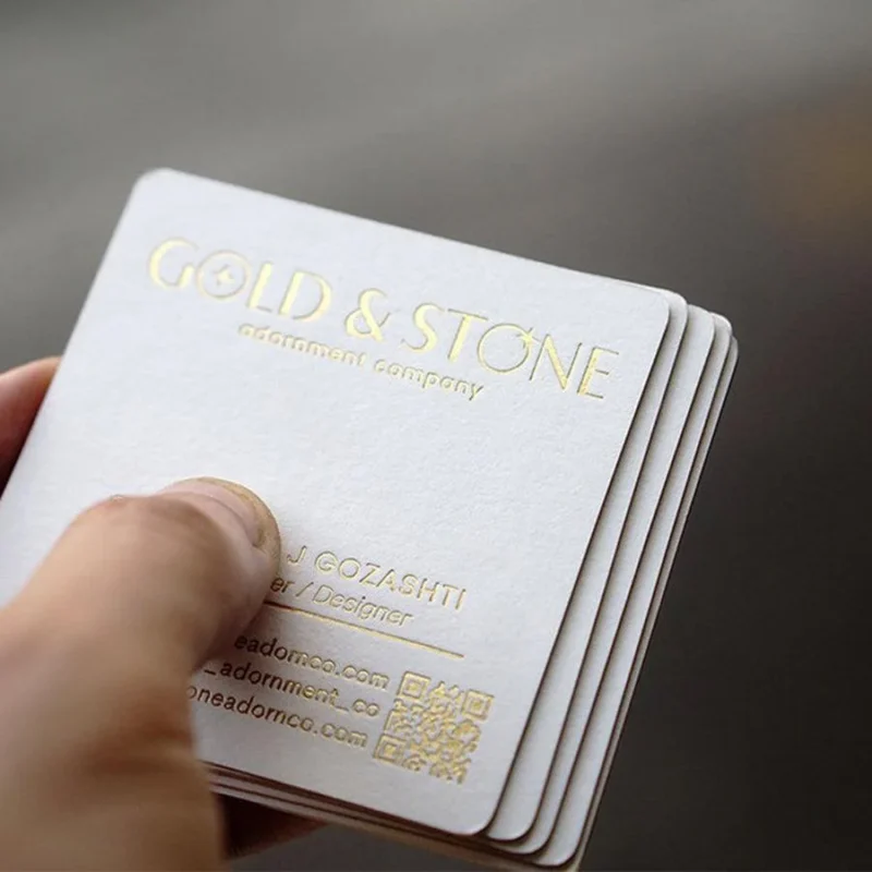 Weiße quadratische Visitenkarten mit Goldfolienprägung