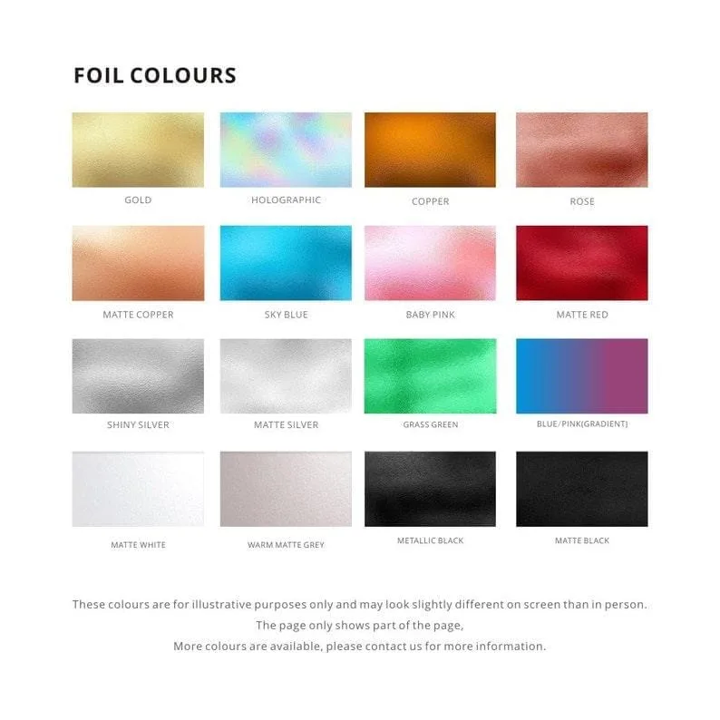 Impresión frontal: solo 1 impresión en papel de aluminio (no CMYK)