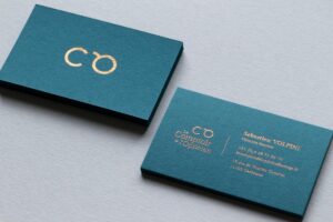 Conception et impression uniques de cartes de visite en feuille verte de luxe avec l’impression de code QR !